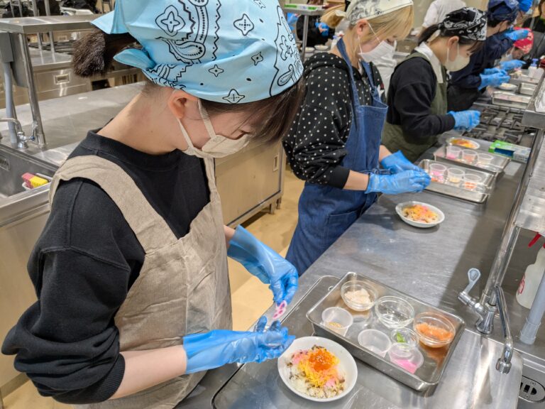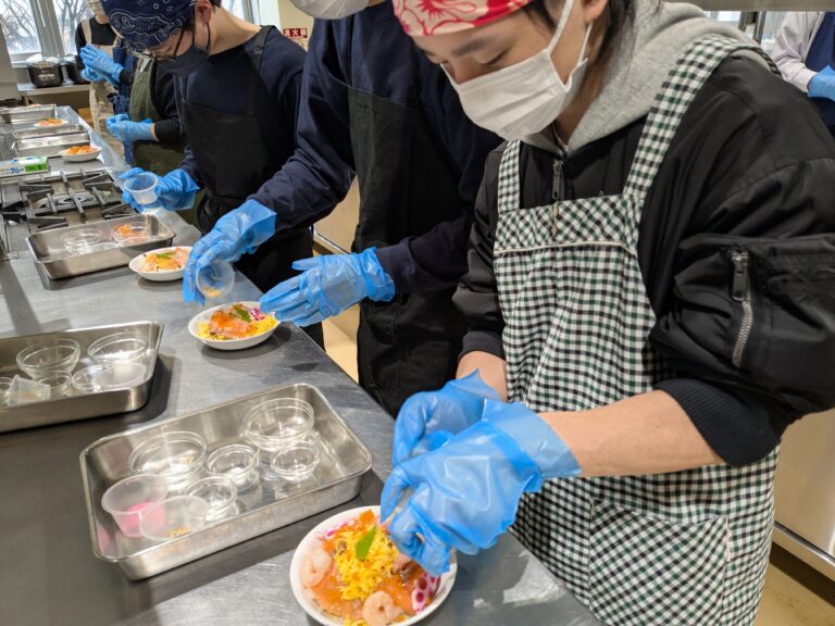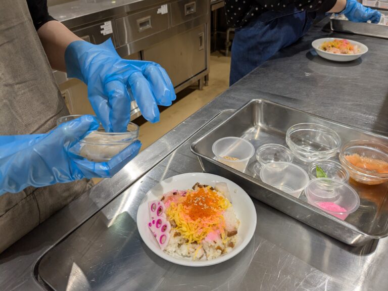 調理分野では、ちらし寿司づくりに挑戦。見た目にもこだわりながら盛り付けを工夫し、「おいしそう!」という声が自然とあがる場面も。