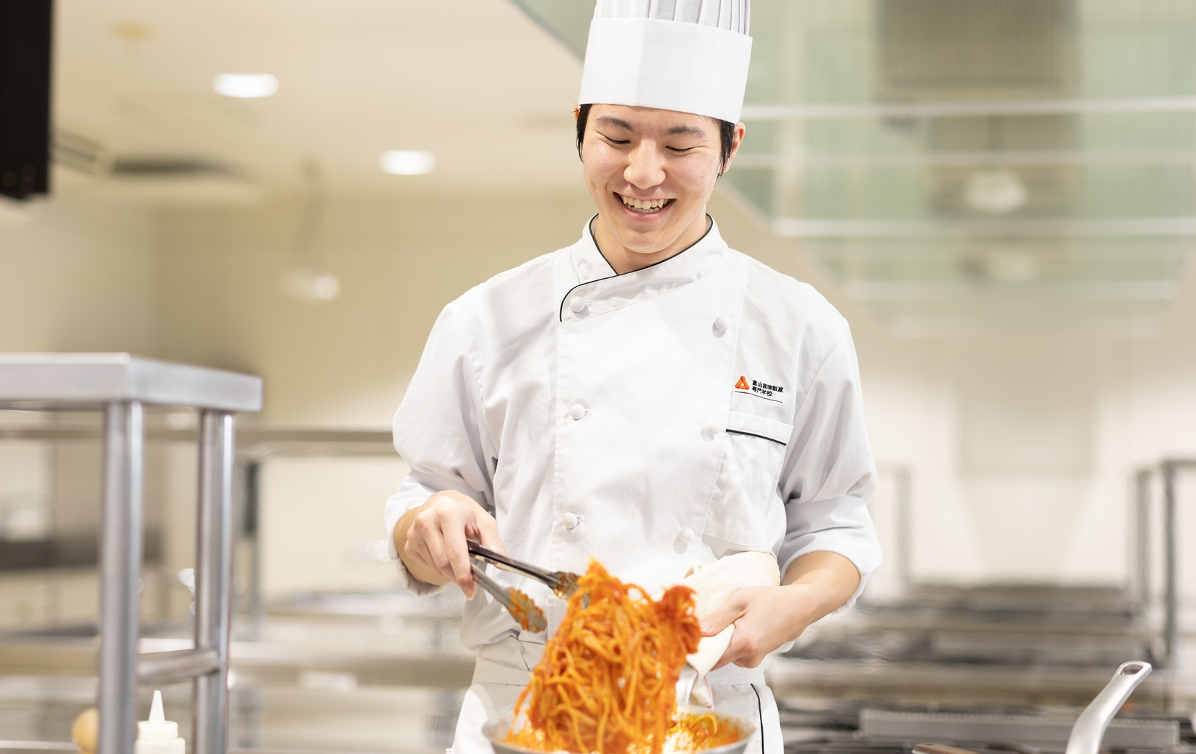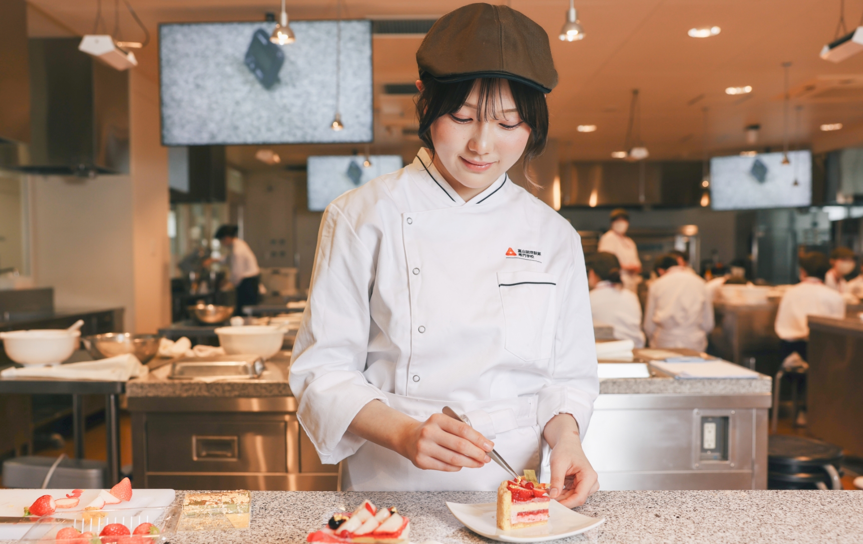 つながる「実践力」「コミュニケーションスキル」「チームワーク」等を、身につけることができます。また、[調理技術科]では、日本料理、中華料理、西洋料理を、[製菓技術科]では、洋菓子、製バン、和菓子、バリスタ等様々な知識・技術を習得することで、生涯にわたり様々なジャンルでの活躍の場が期待できるだけでなく、ジャンル間でのコラボといった、あなたの発想・アイディアで様々な調理・製菓のカタチをつくることができます。