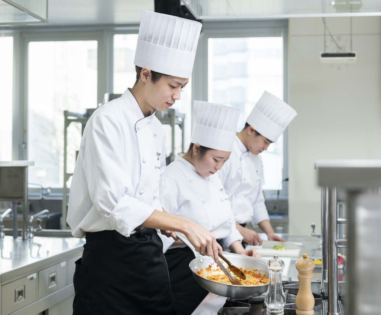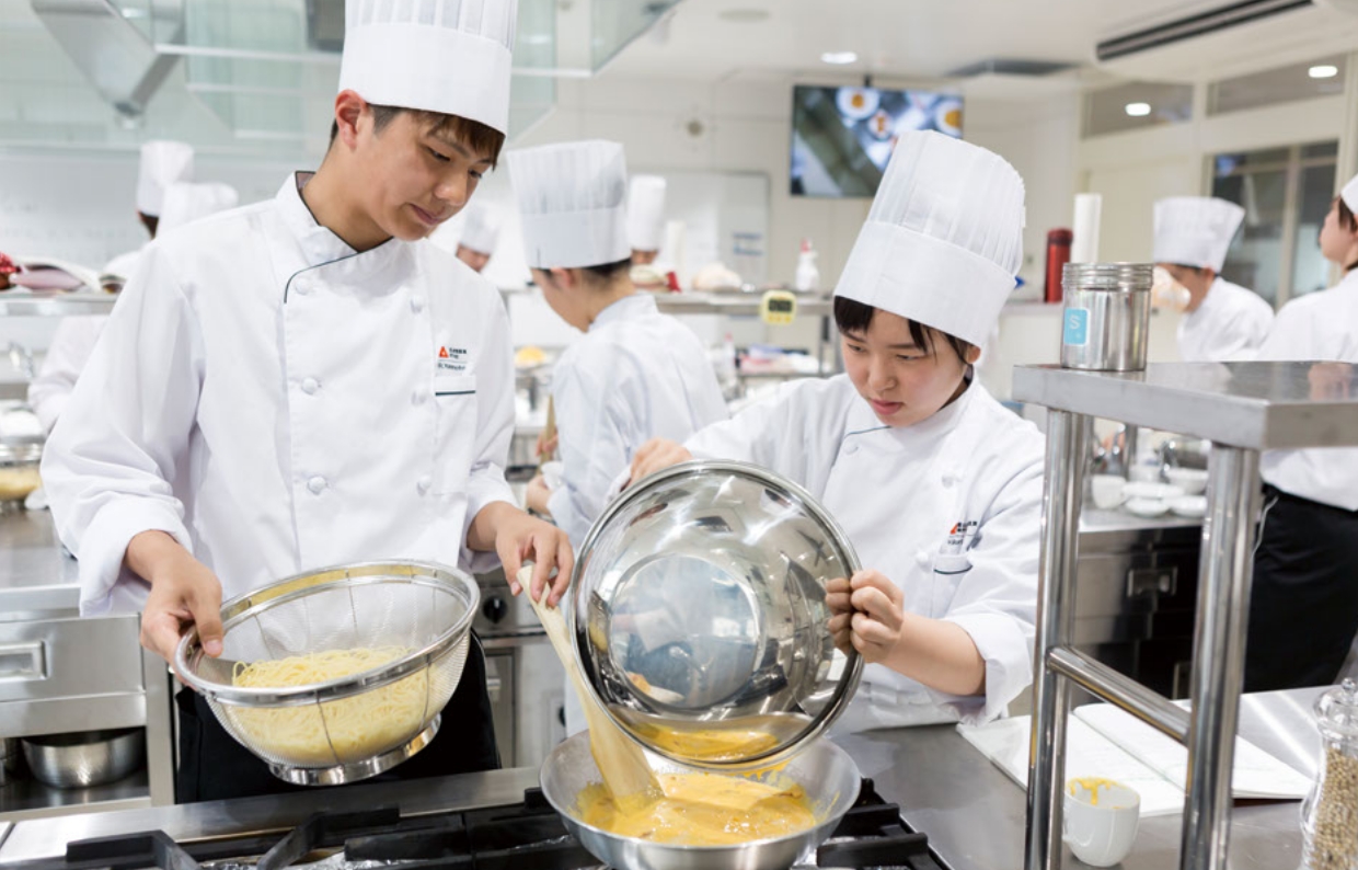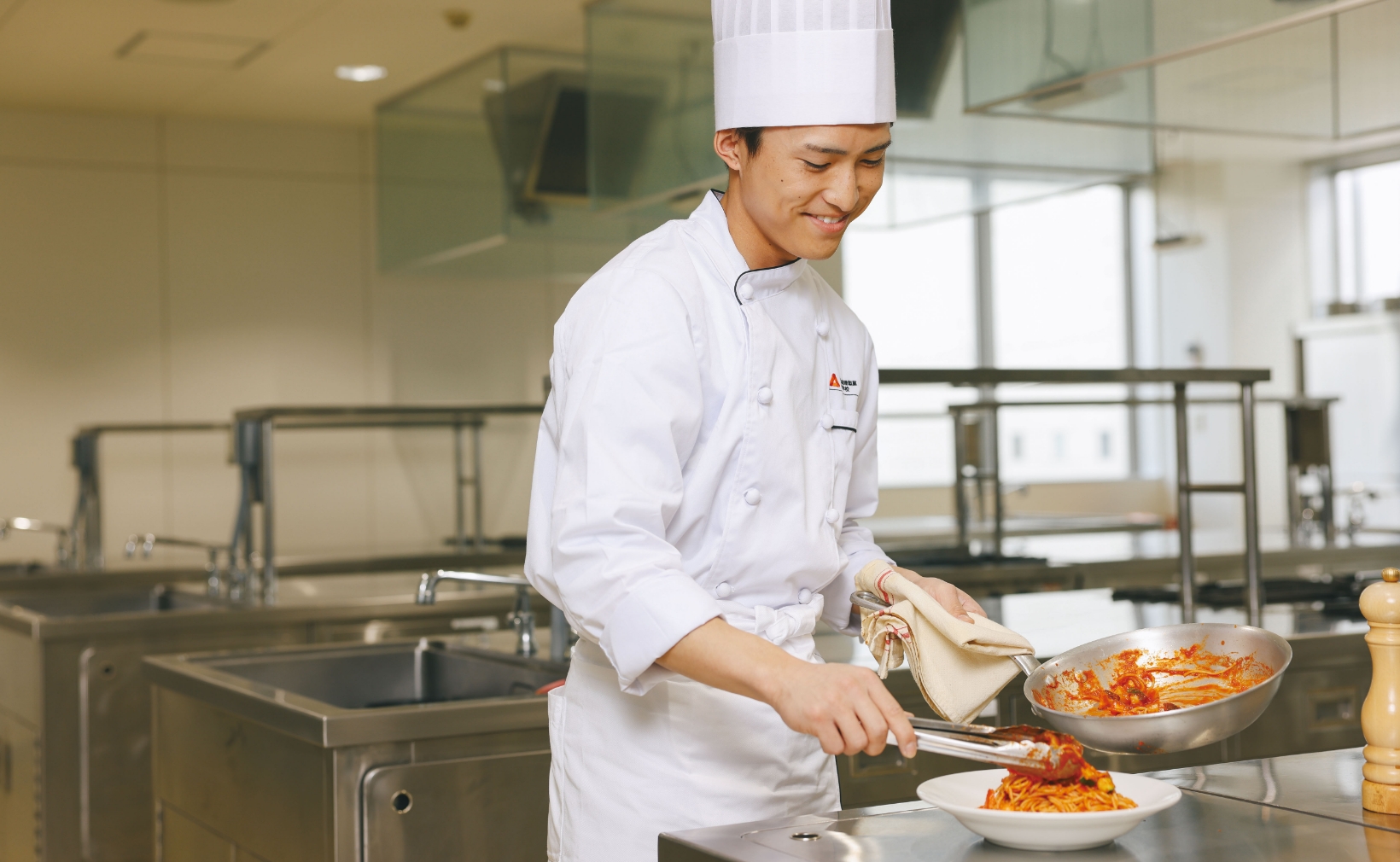食を通してお客様に喜びを提供するためには、料理の技術はもちろんのこと、ホスピタリティや衛生面の管理など幅広い知識と教養が求められます。本科では現場を知り尽くした一流の教員による授業と全国トップクラスの実習量を通して、プロフェッショナルとして必要なスキルを2年間で磨き上げていきます。